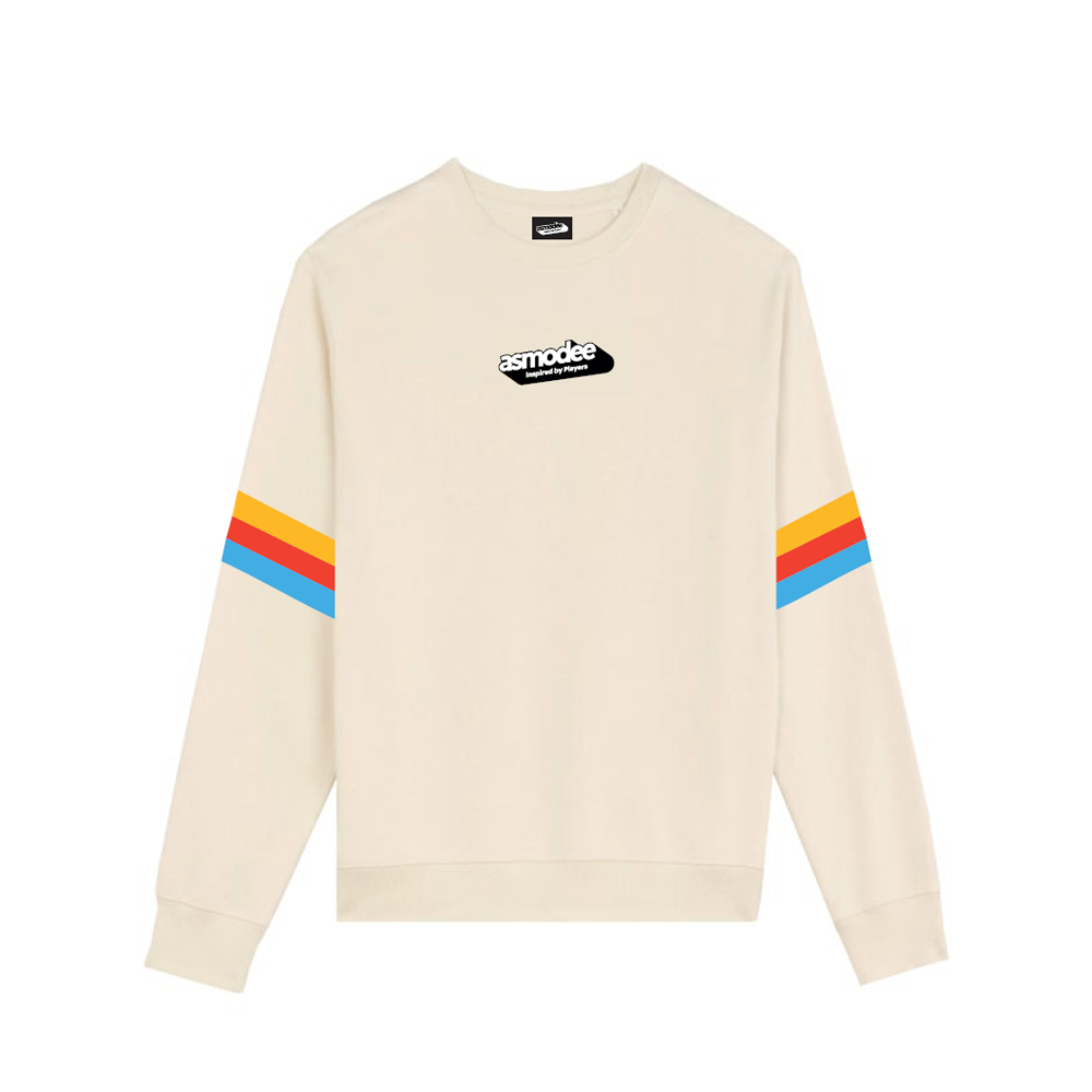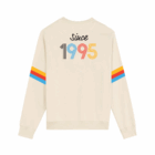 Front embroidery / color print on back “1995” and colorful stripes on sleeve